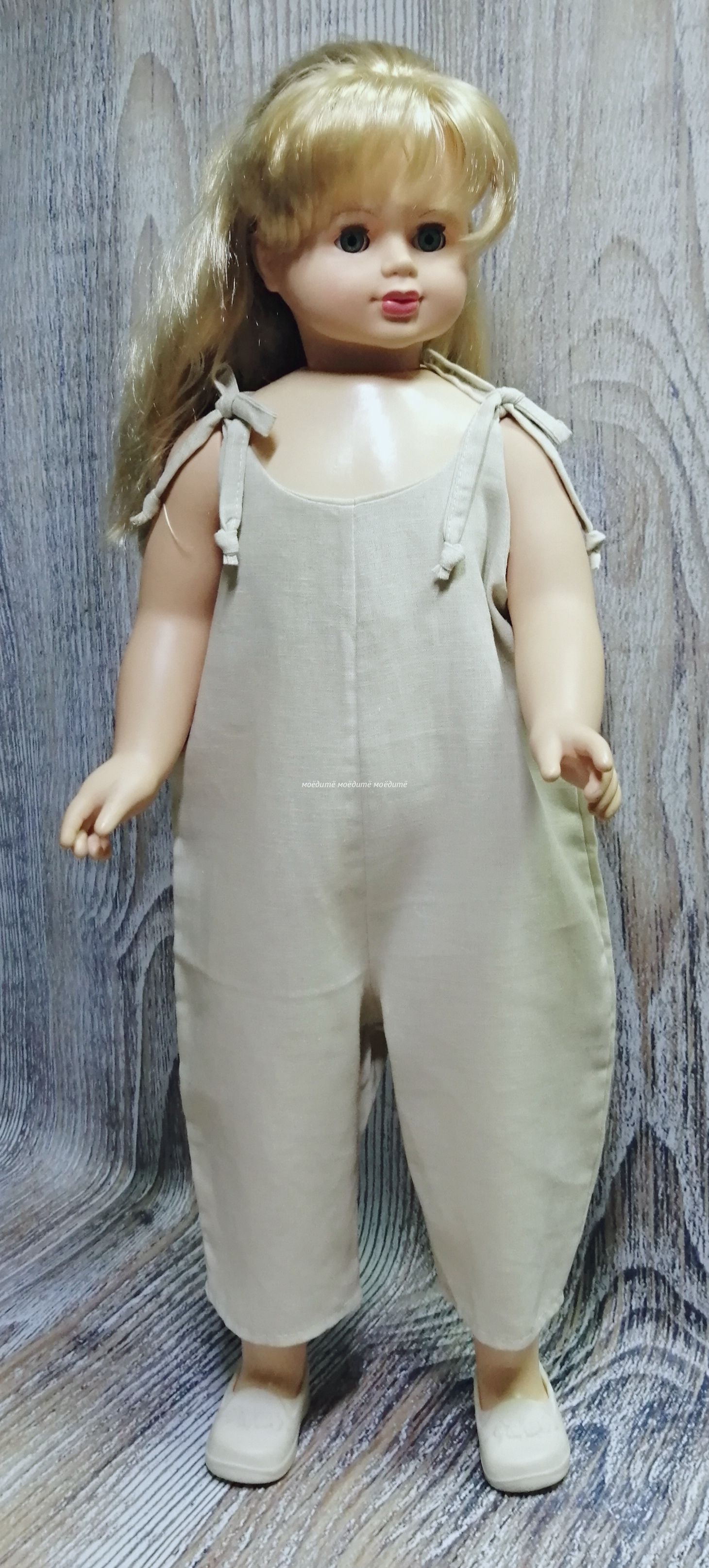Песочник выполнен из льняной ткани. Сверху на завязках.